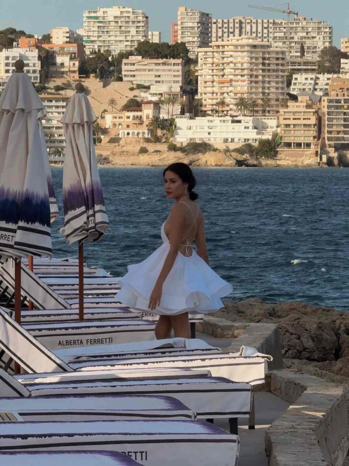 Halterneck Offene Rückseite Hochtaillierte A-Linie Weit Saum Mini Kleid
